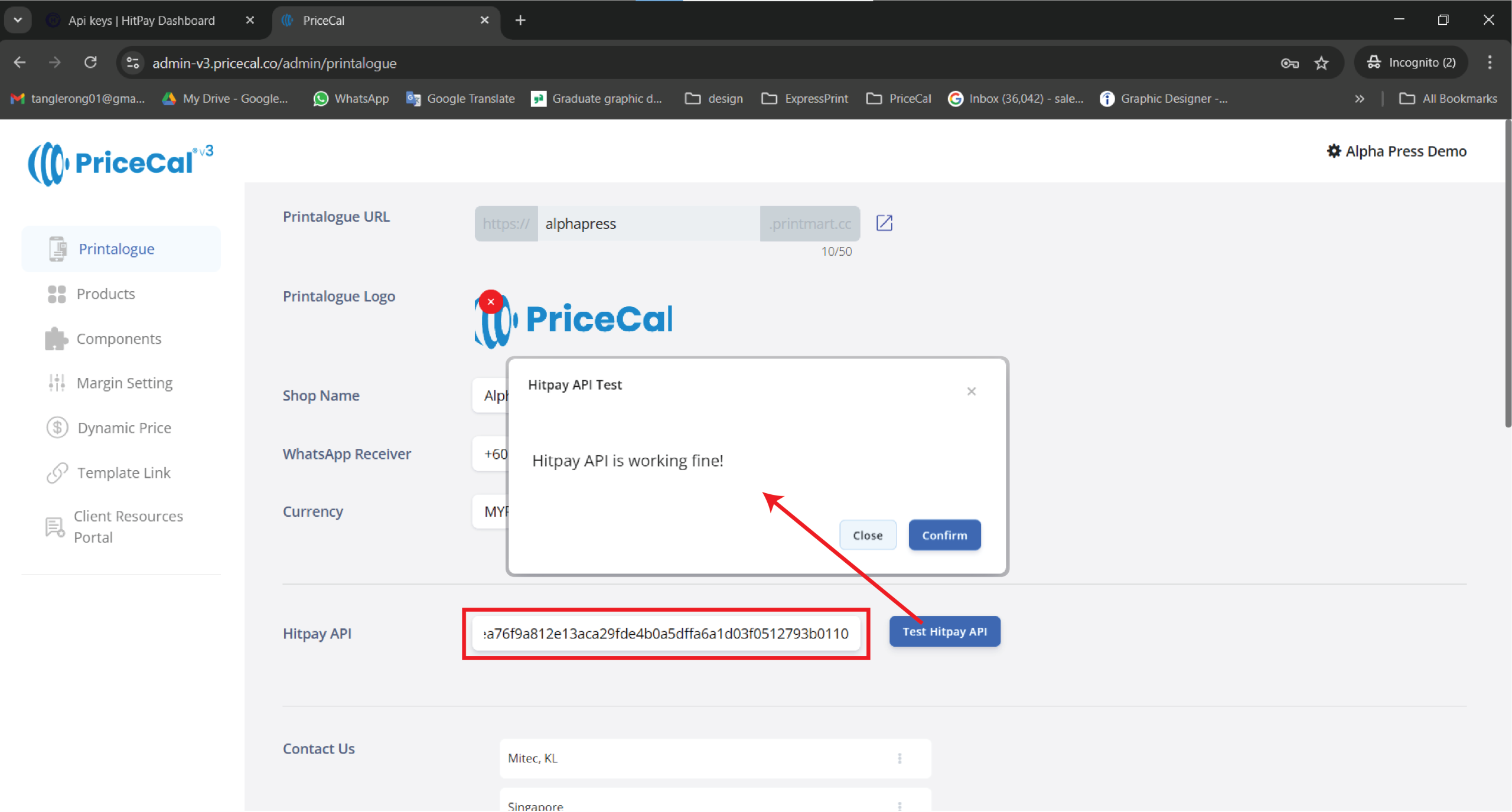 Enable payment collection by adding your HitPay API key. (See Tutorial)