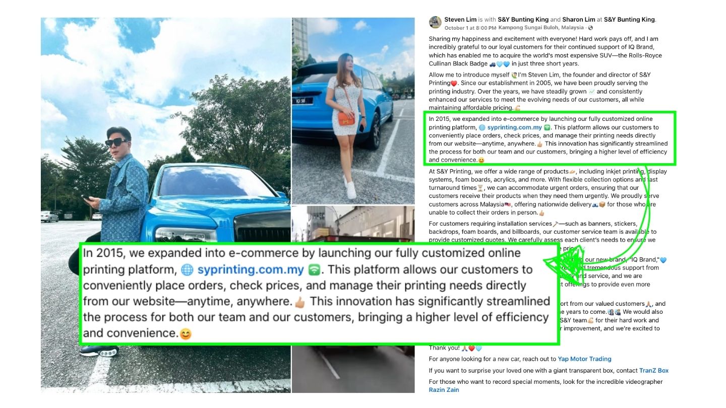 Consider this: S&Y Printing transformed their business by going online. In less than 10 years, they became a success story (Original Facebook post can be found here)