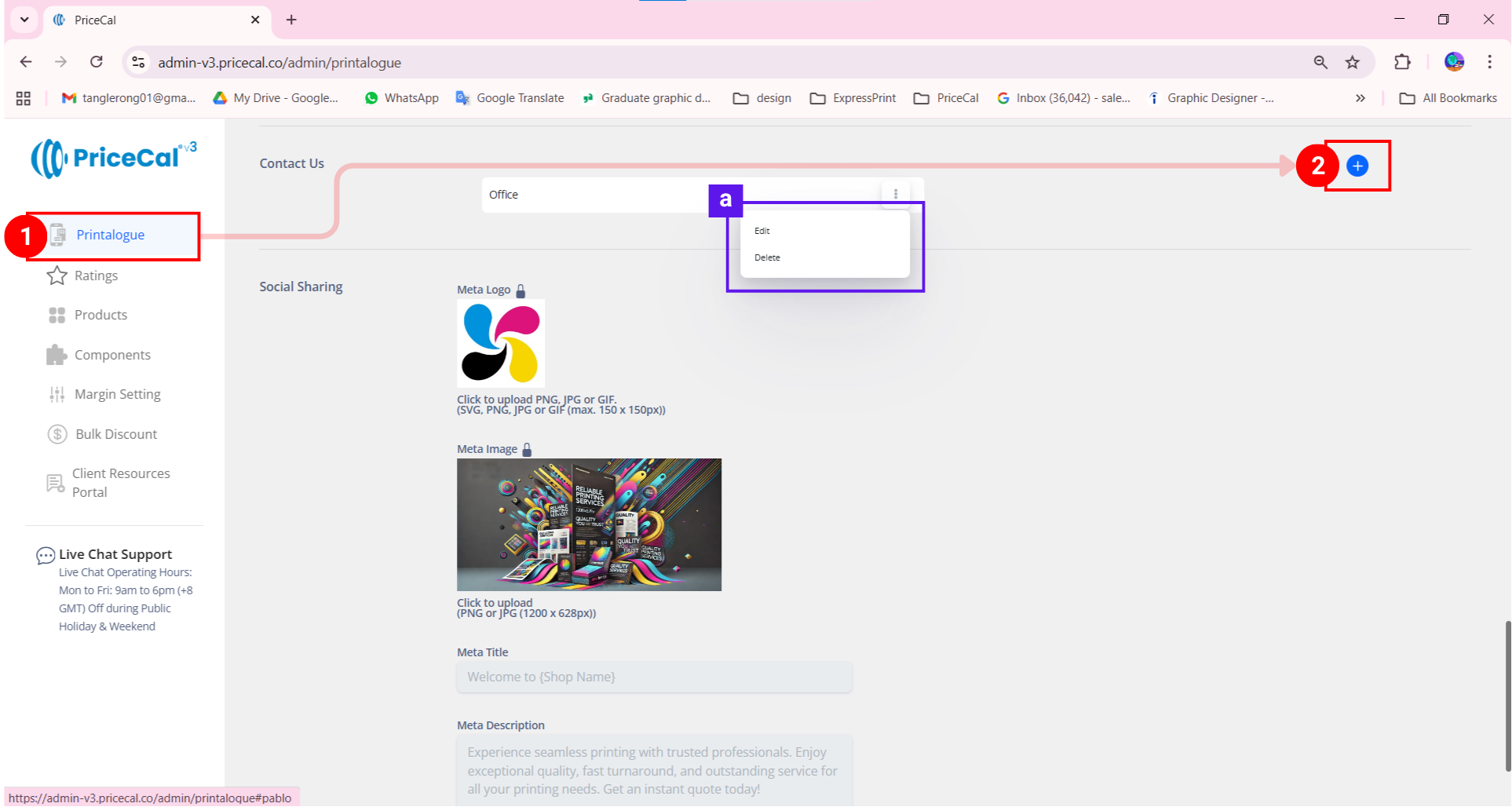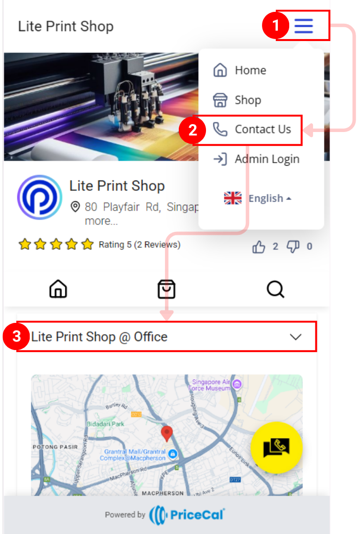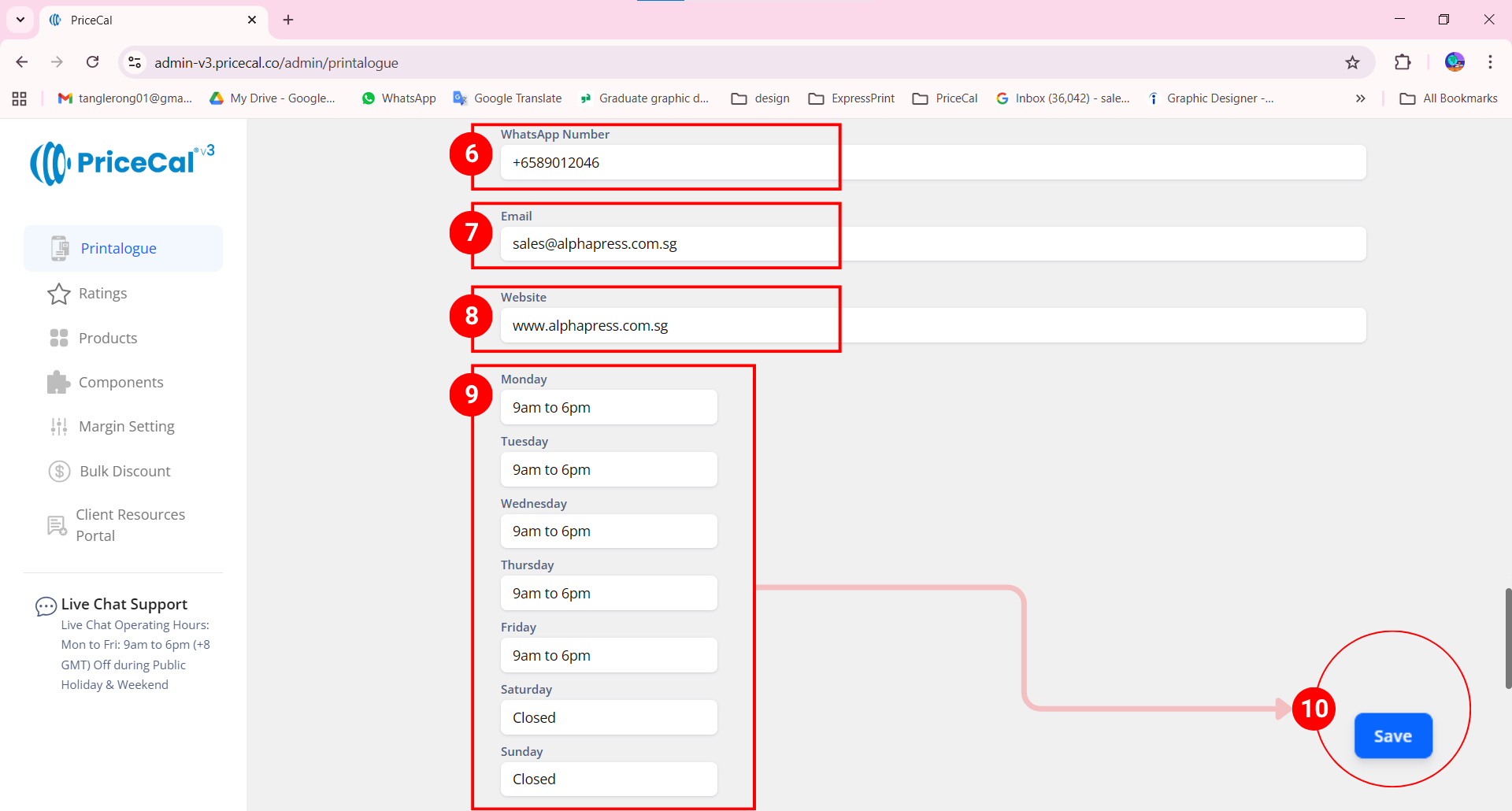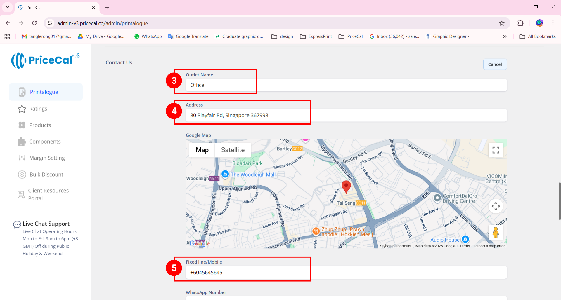 Contact Details are your business location and operational information displayed on your Printalogue storefront. This section provides customers with essential information about where you’re located, how to reach you, and when you’re available—building trust and making it easy for customers to visit or contact your physical shop.
