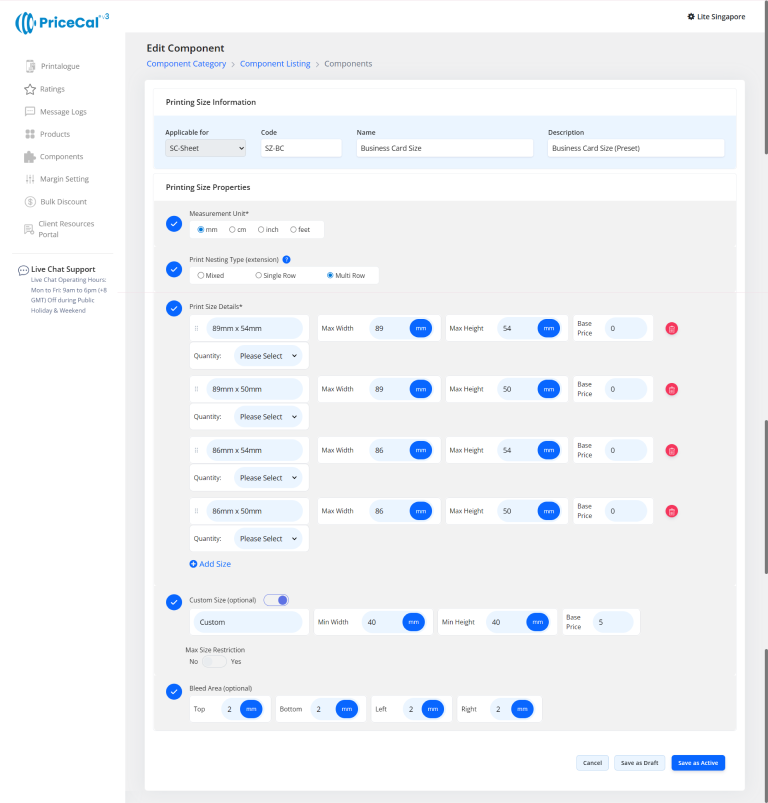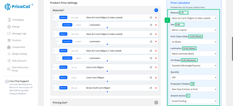 Profit Margin: Apply different profit percentage levels for business card product or digital print product category.