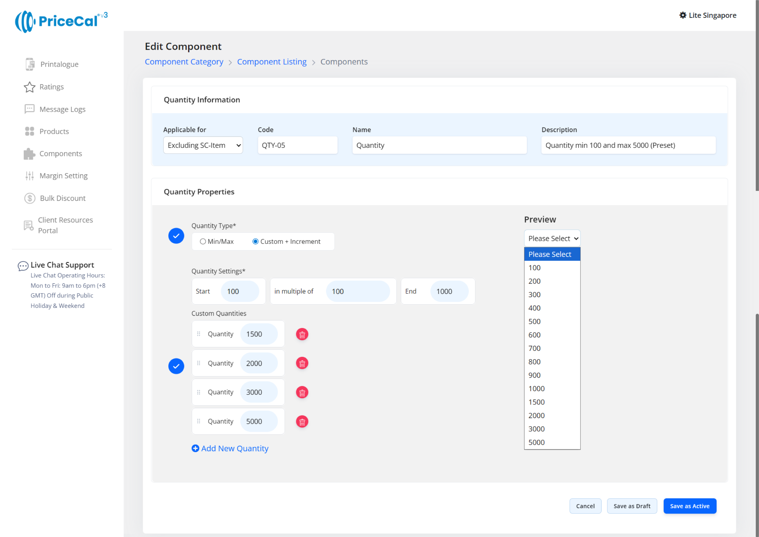 - We need to use “Custom + Increment” to set a preset quantity, Example quantities: 100 / 200 / 300 / 400 / 500…