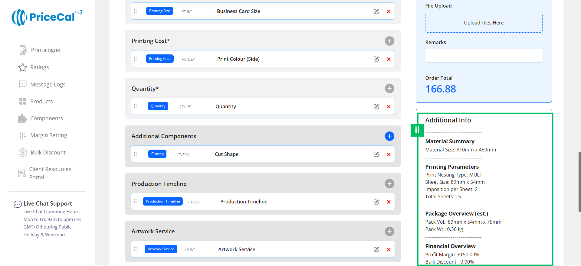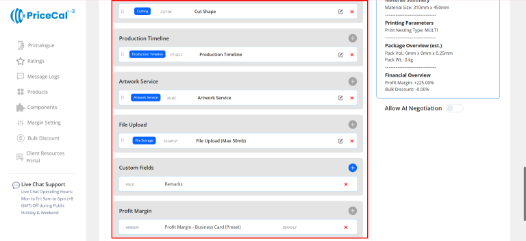 - Financial Overview – Summarizes the applied profit margin and any bulk discount applied.