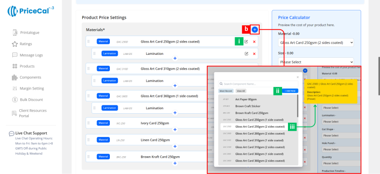 - You want PriceCal to calculate sheet usage, imposition, and cost