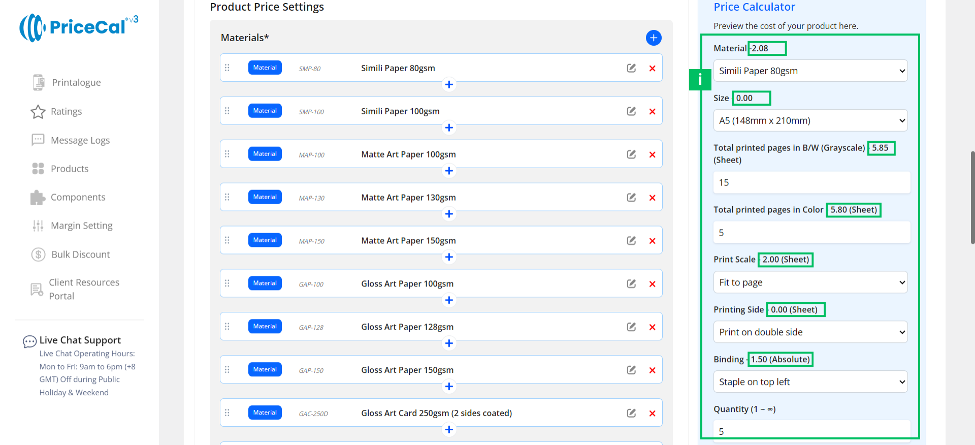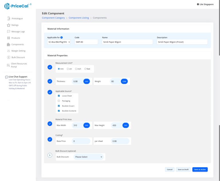 When you want PriceCal to automatically calculate sheet usage, printing cost, and quantity-based pricing, SC-Sheet is the recommended approach.