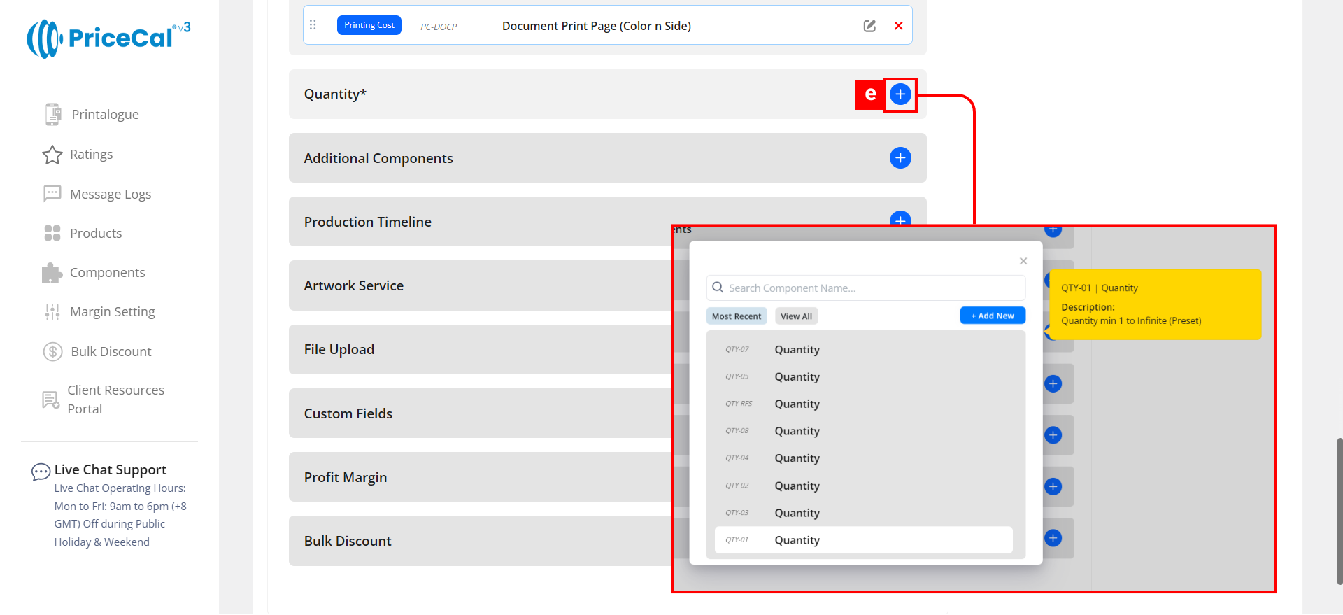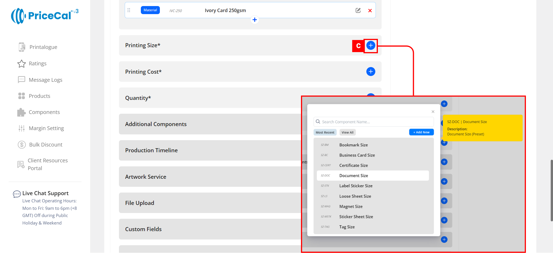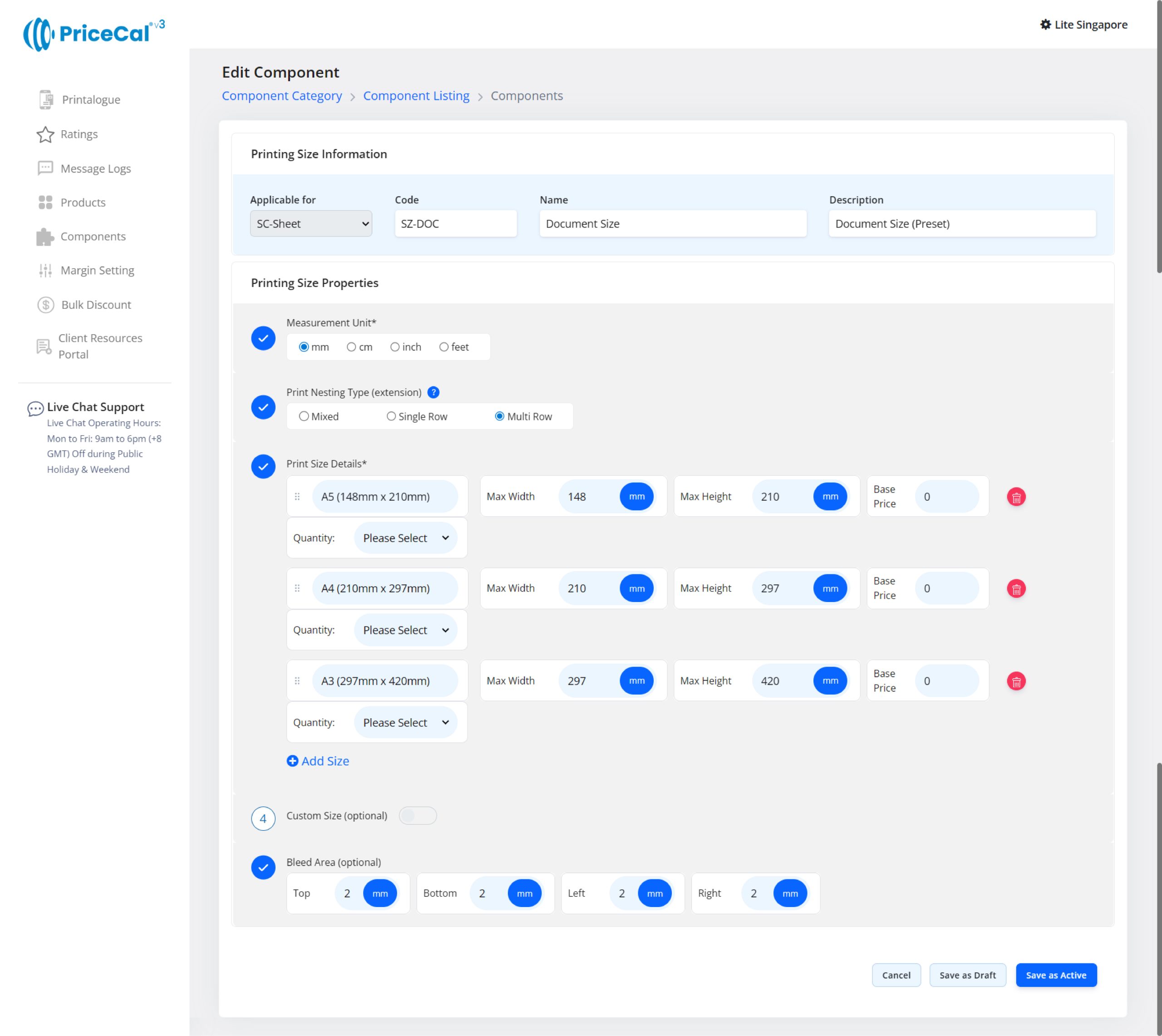 Custom Component: choose the finishing component category like Print Side, Binding. And add the component.