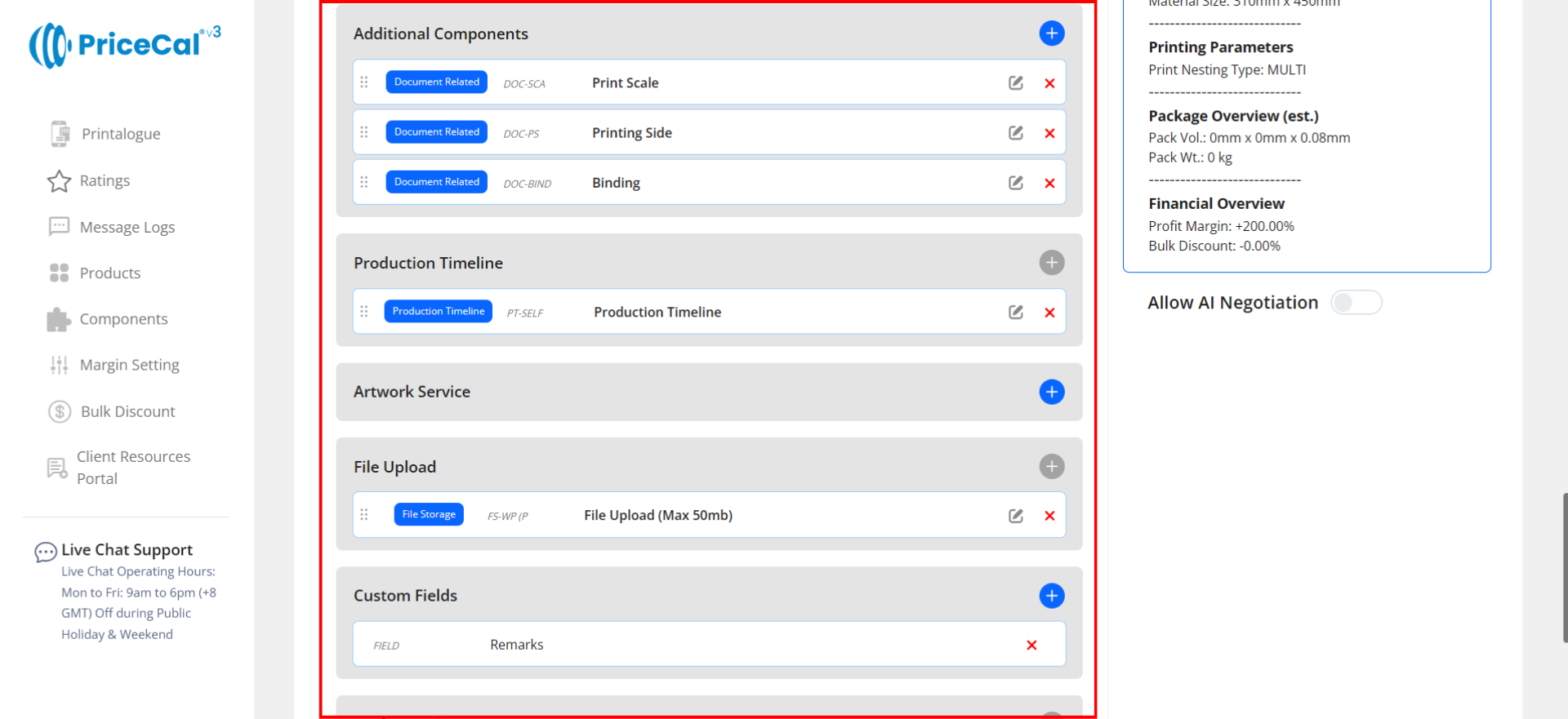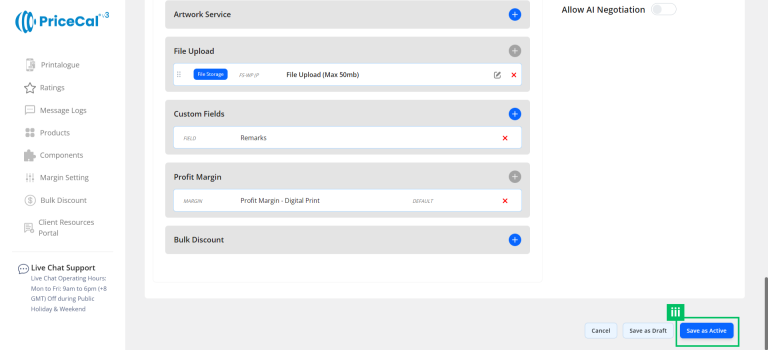 Profit Margin: Apply different profit percentage levels for label sticker product or digital print product category.