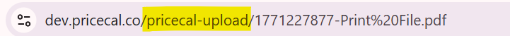 When a customer uploads artwork during checkout, PriceCal sends the file to your chosen storage (WordPress or FTP).