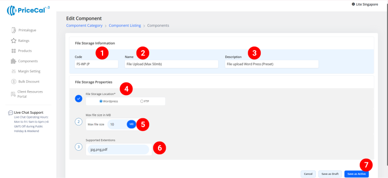 The File Storage Component defines where customer-uploaded print files are saved when orders are placed through your Printalogue or website.