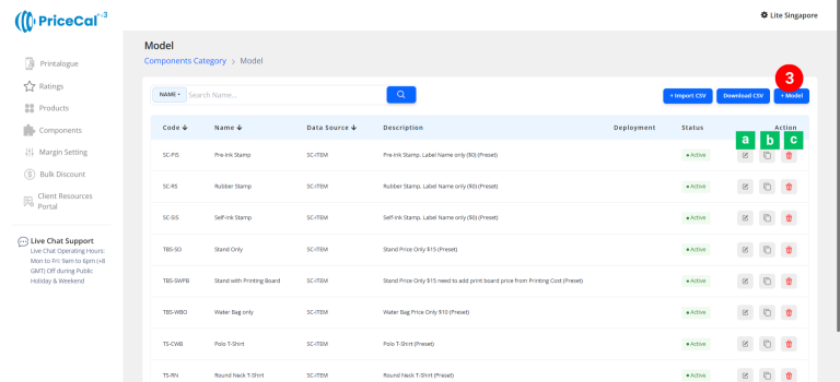 In PriceCal, the Model Component helps you define those item types (models) and their associated costs per piece — giving you full control over your item pricing structure.