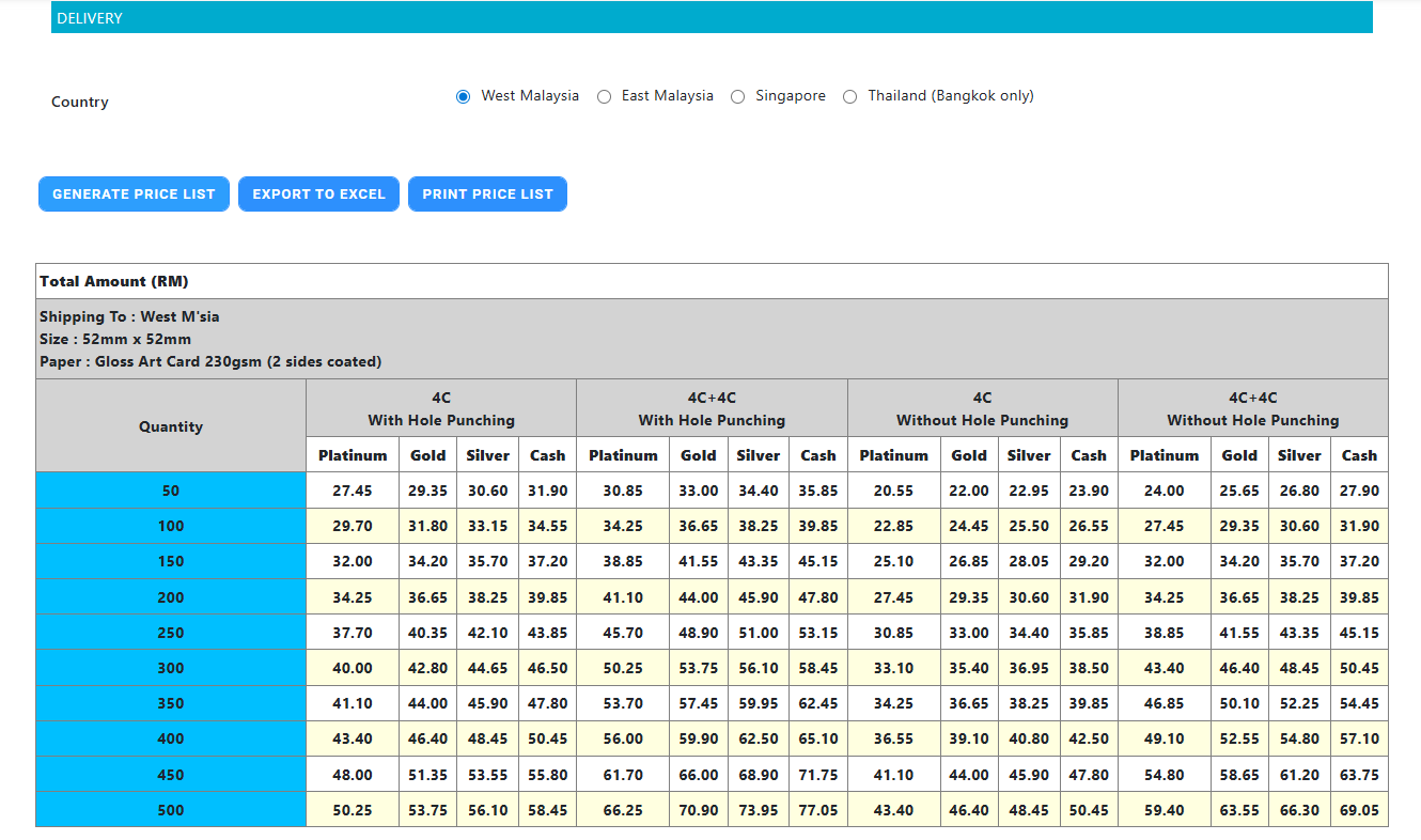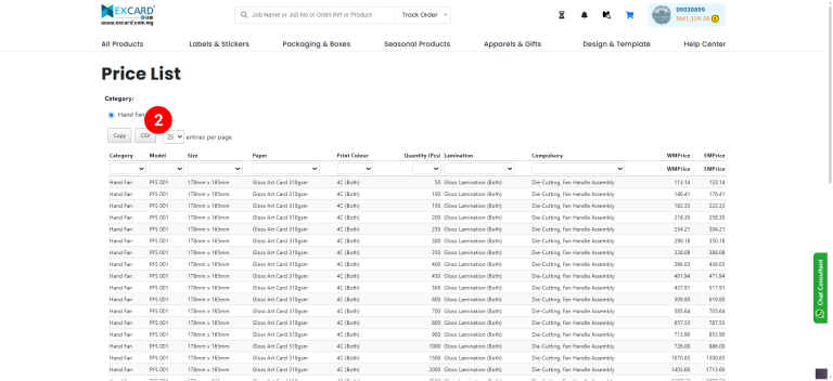 🖨️ Excard is a well-known Malaysian online printing factory that supplies a wide range of printed products to resellers. They provide price lists in two formats: