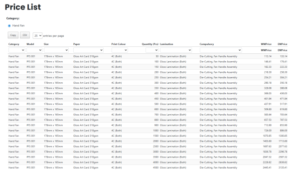 - New Version – full price list downloadable as CSV