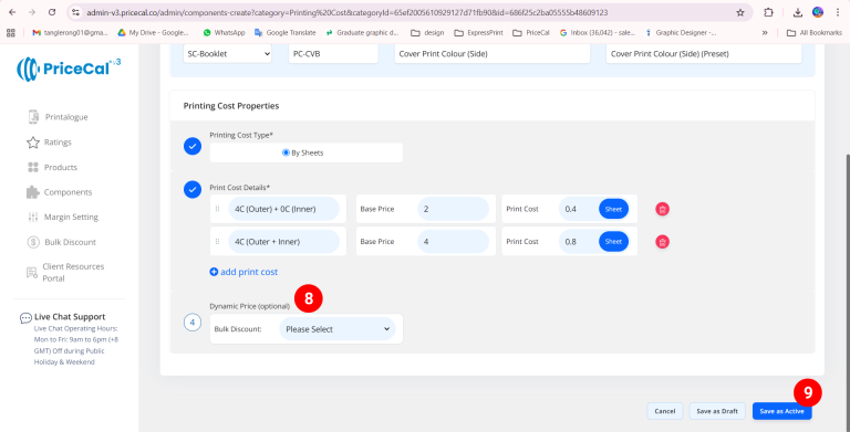 This tutorial walks you through how to set up Printing Cost for sheet-based products (like business cards, flyers, or booklets) under SC-Booklet.
