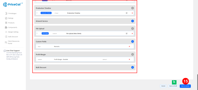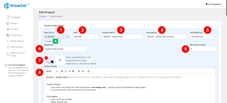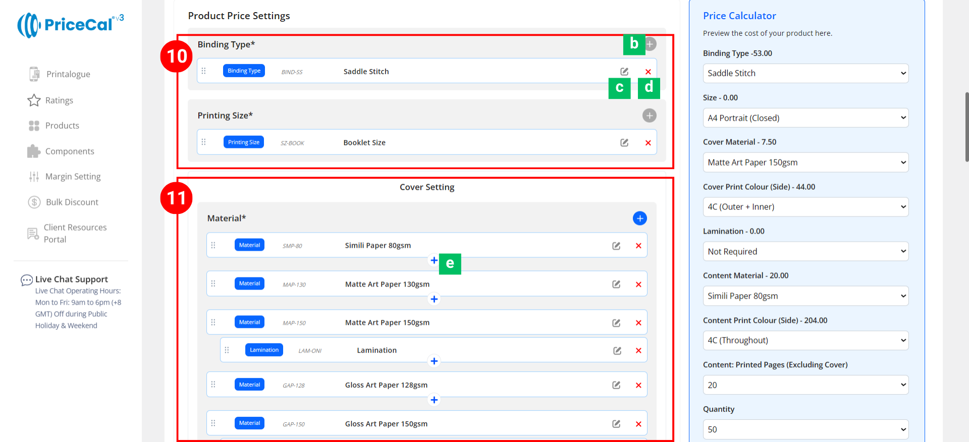 Add your essential Booklet Components — this includes Binding Type and Booklet Size.- Add Component [b]:Click to add or create a new component for this product.