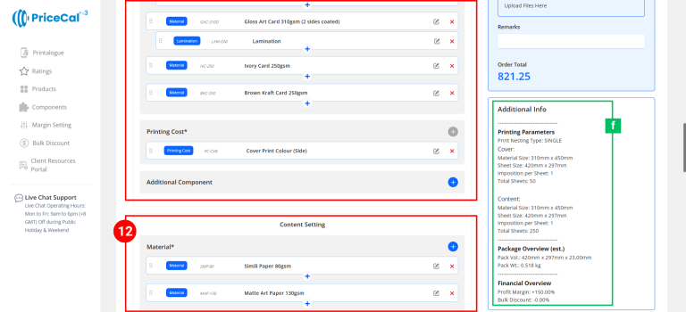 This module allows you to combine different paper materials, sizes, and binding types while ensuring accurate sheet and page calculations.