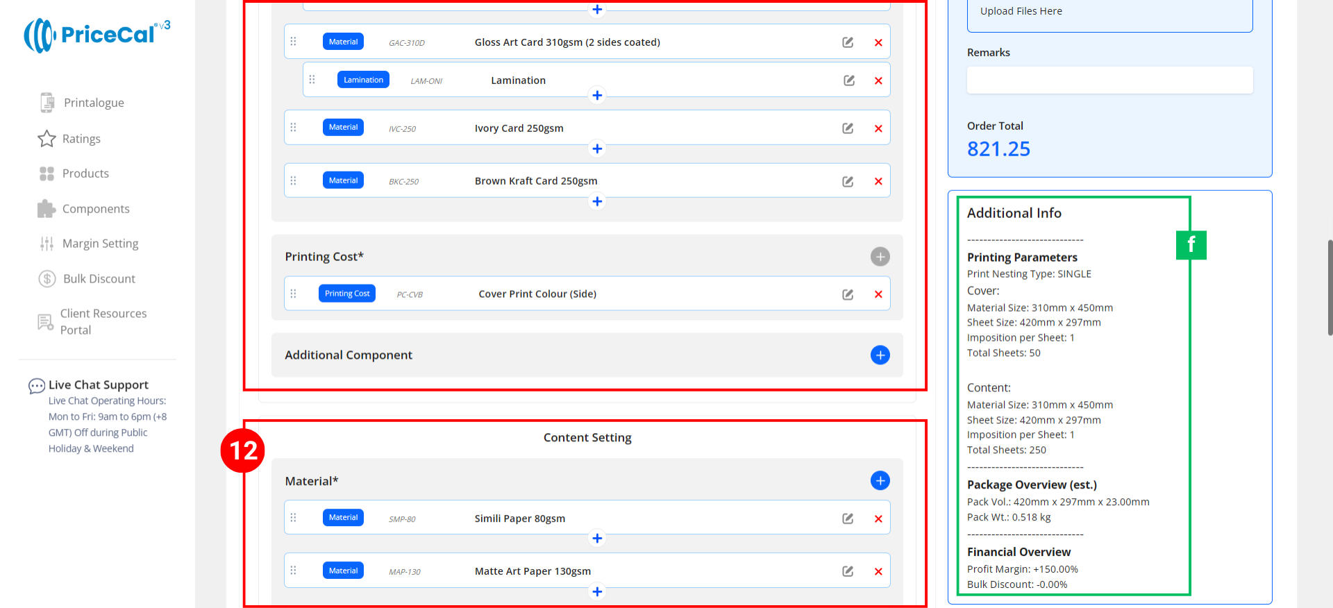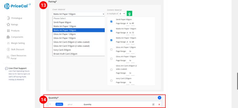 Name your materials clearly (e.g., “Cover – 310gsm Art Card / Content – 128gsm Art Paper”).