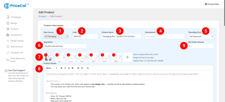 💡 Note: If the open size of your packaging or box model exceeds the Max Material Print Area, the system will stop the customer from proceeding to the next selection (printing cost, or finishing). -