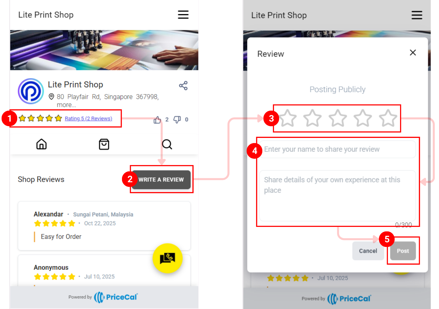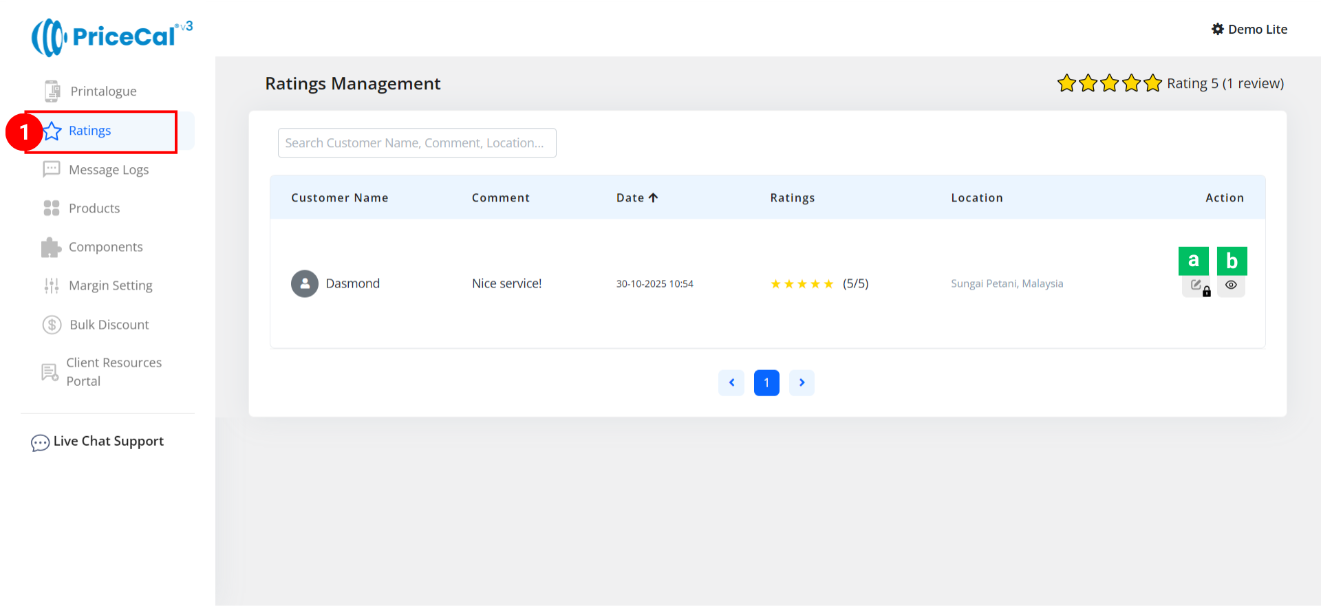 After receiving the review, you can check it in the PriceCal dashboard. To check and delete the review: