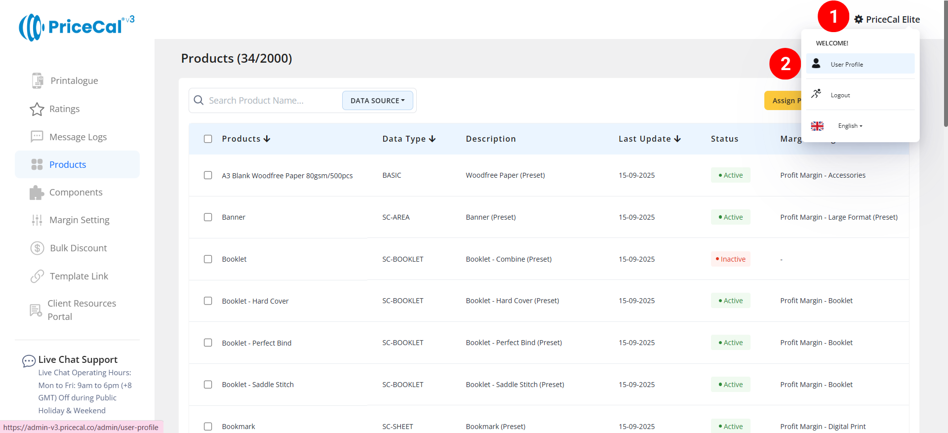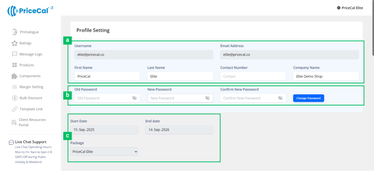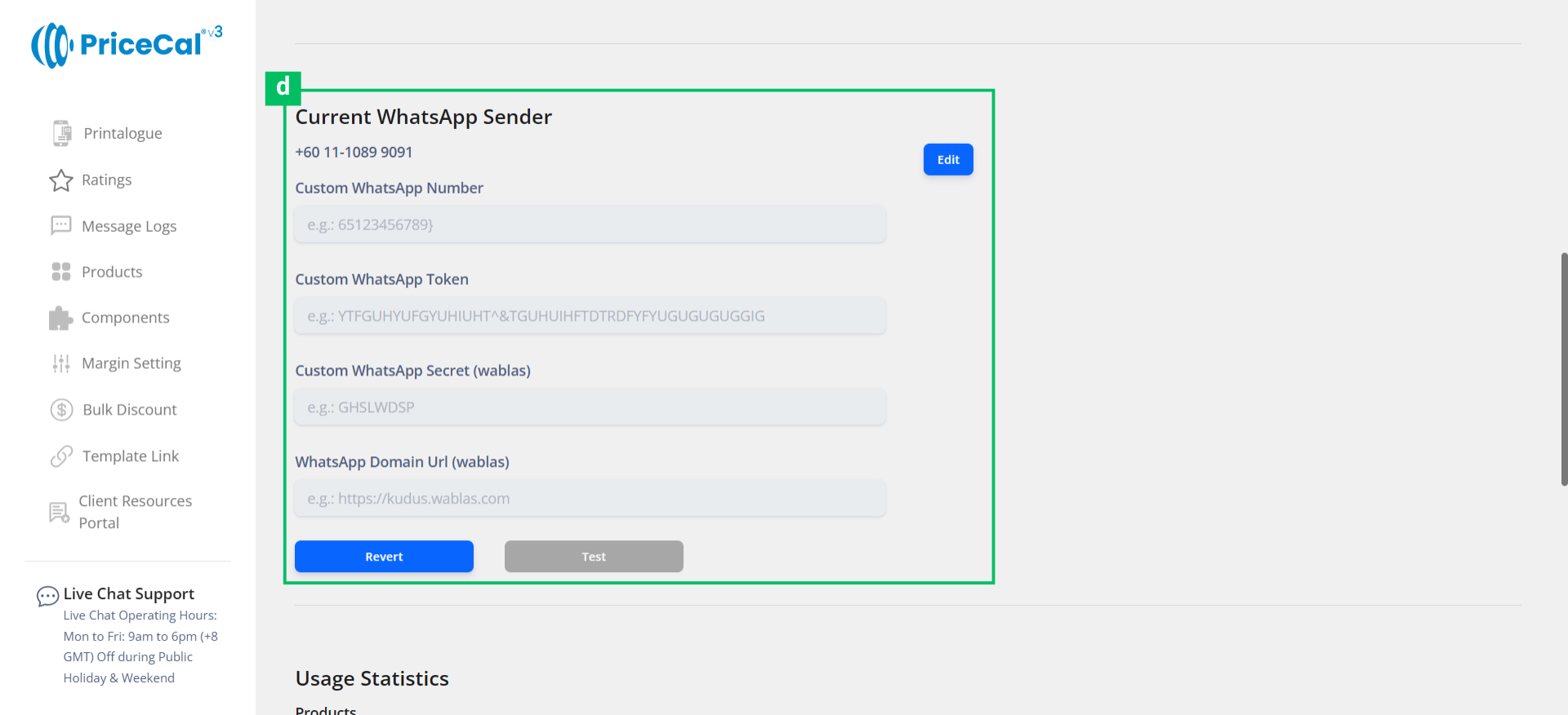 The custom WhatsApp sender feature allows print shops to send quotes, payment information, and order notifications via your own WhatsApp number. By default, the system uses PriceCal system’s WhatsApp number.
