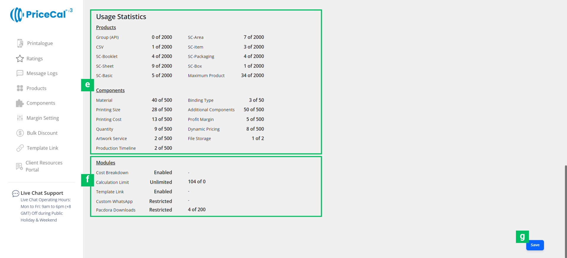 Calculation Limit displays how many times price calculations (quotations) can be generated by the system.